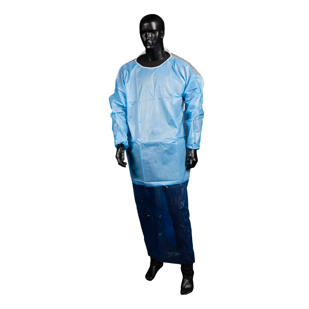 Med-Comfort PP-Vlieskittel mit angenähter Schürze Oberteil aus sehr luftdurchlässigem Polypropylen-Spinnvlies mit PE-Beschichtung Schürze aus Polyethylen Latexfrei Länge total: ca. 150 cm Länge Polypropylen-Teil: ca. 90 cm Die Schürze hat 2 Perforationen und kann um 2x 15 cm gekürzt werden Bietet sehr guten Spritzschutz VE = 10 Beutel á 10 Stück Euro-Pal.: 24 Krt.