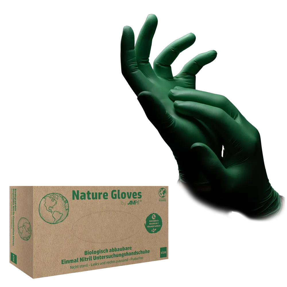 Biologisch abbaubar 240 mm lang, unsteril AQL 1.5, CAT III, EN 455 VE = 10 Boxen à 100 Stück Euro-Pal. = 800 Boxen