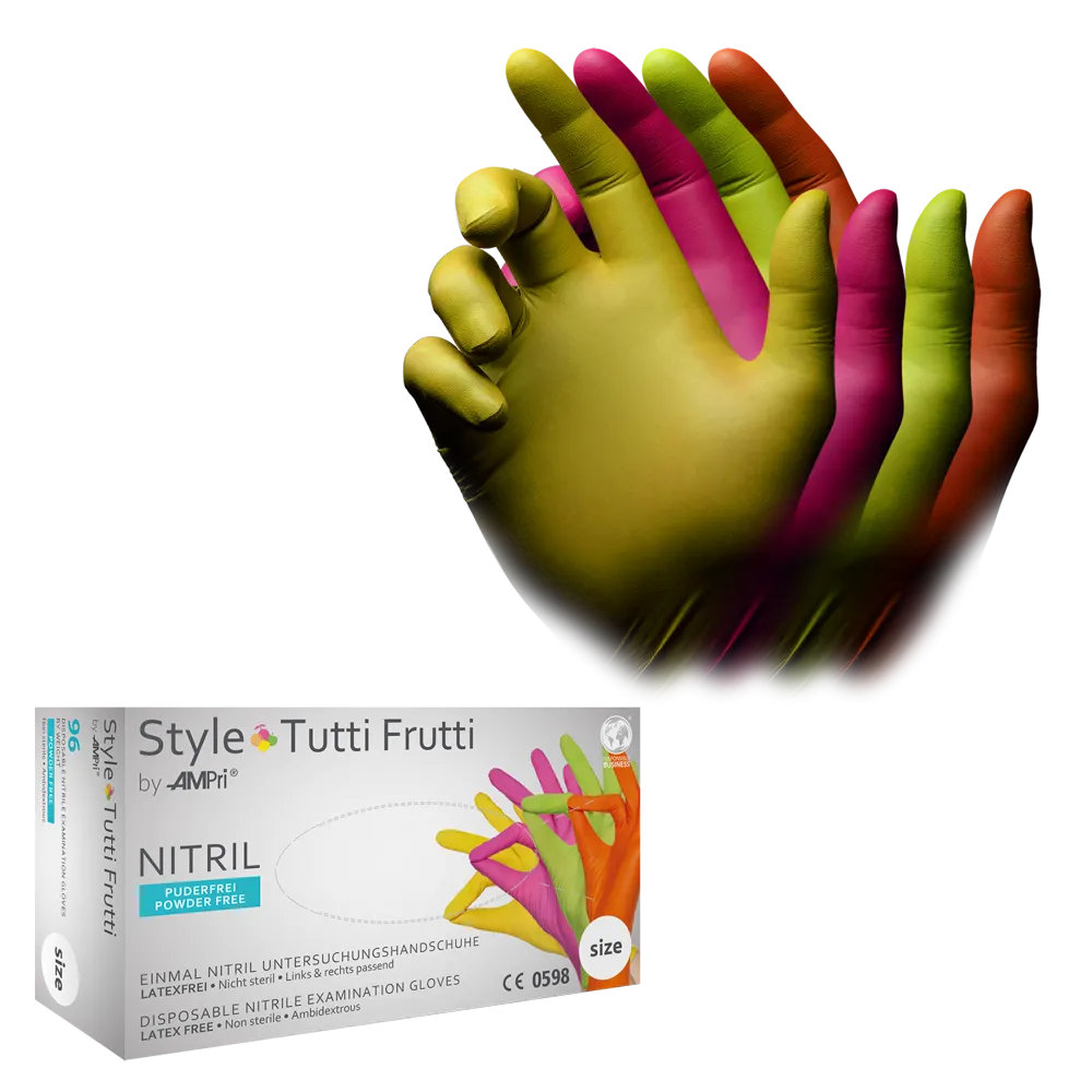 240 mm lang, unsteril je 24 Stück in gelb, apfelgrün, orange, magenta AQL 1.5, EN ISO 21420, EN 455, EN 374 VE = 10 Boxen à 96 Stück Euro-Pal. = 800 Boxen